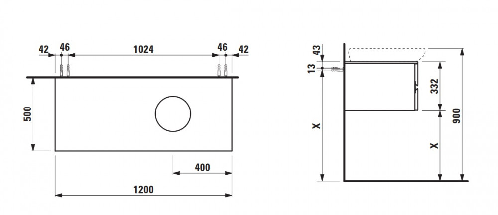 Тумба під раковину Laufen IL Bagno Alessi One 120х50х33,3 см виріз праворуч МДФ білий лак H4241320976311