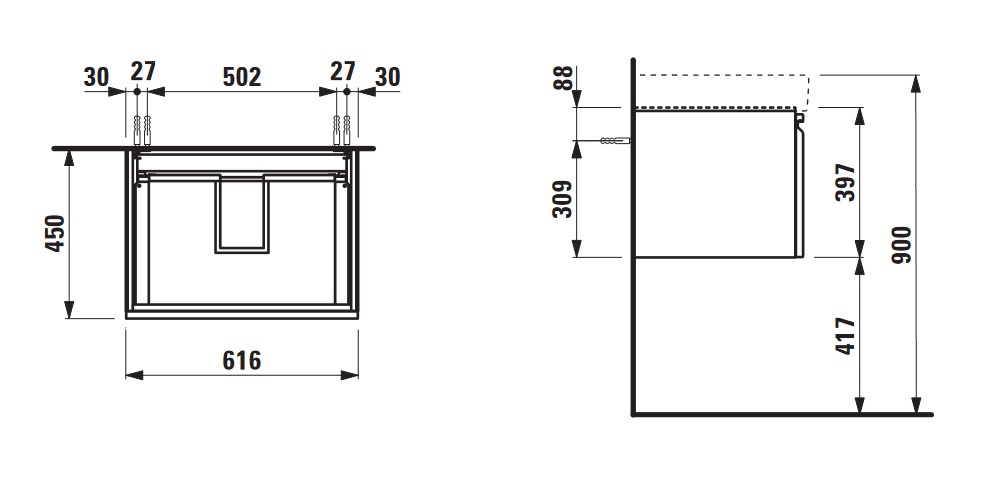 Тумба під раковину Laufen Pro S підвісна 61,6х45 см МДФ колір на вибір H4834210969991