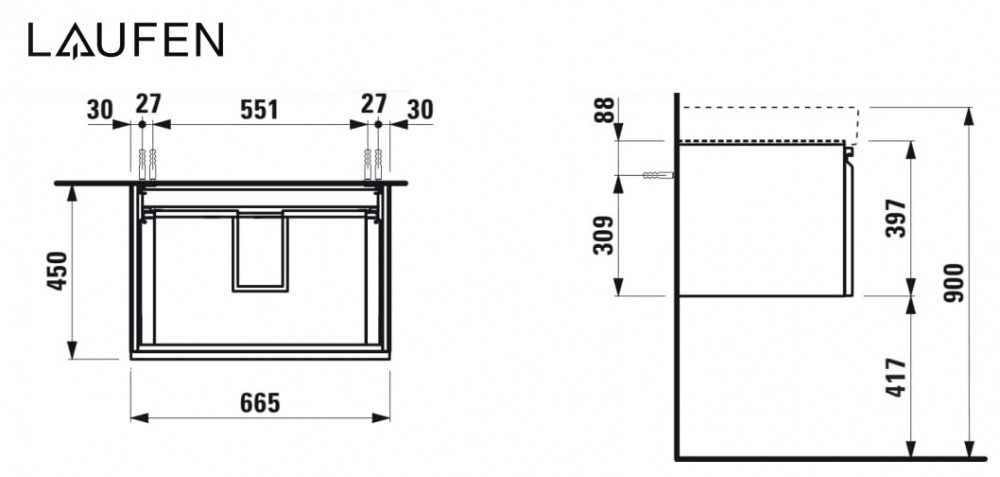 Тумба під раковину Laufen Pro S підвісна 66,5х45 см МДФ білий глянсовий