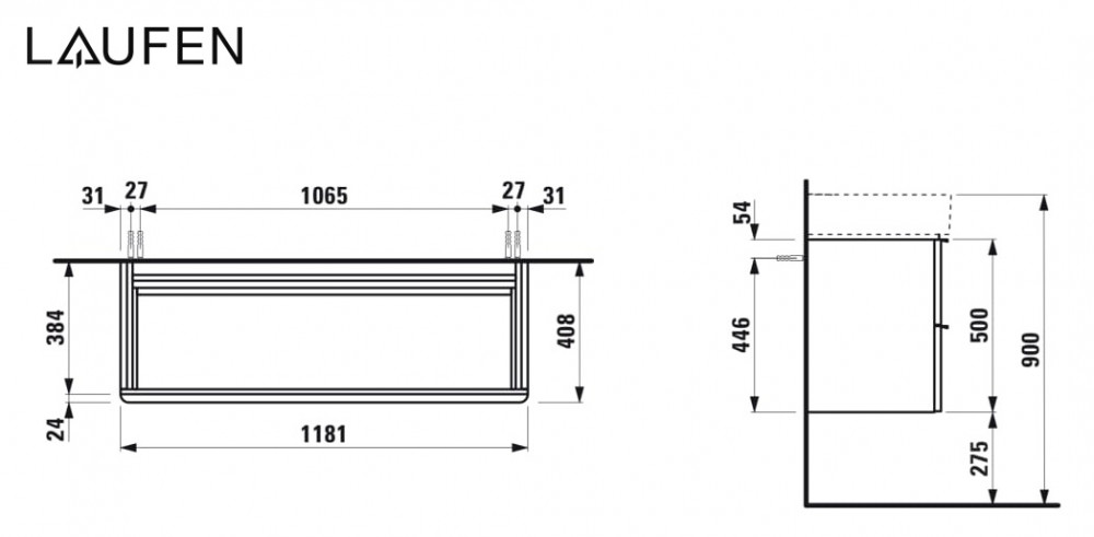 Тумба під раковину Laufen Space підвісна 118,1 х40, 8 см HPL колір на вибір H4102221609991