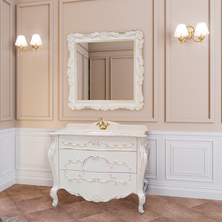 1) Тумба під раковину Marsan Felicie 1110 дерево / МДФ білий / золото