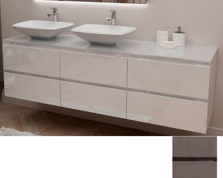 можливо укомплектувати раковиною зі скла або акрилового каменю, а також скляною стільницею або стільницею з акрилового каменю і доповнити настільної раковиною (за додаткову вартість)