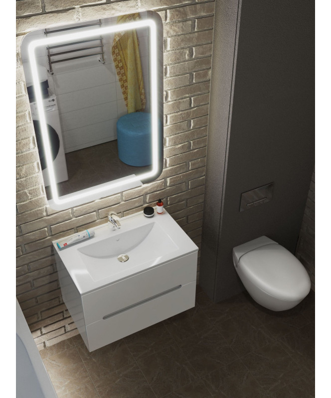 Встановлення шафи здійснюється підвісним способом, що полегшує очищення підлоги у ванній кімнаті і створює візуальний ефект легкості та простору. У центрі розміщення WASHBASIN розташований у центрі, що забезпечує зручність з'єднання та використання.