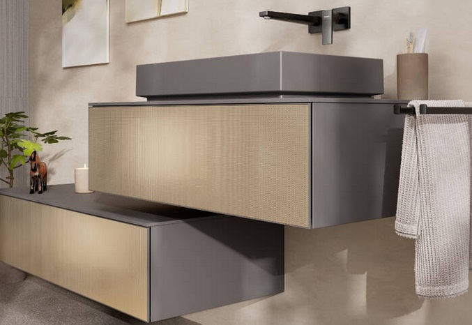 Настінна тумба Hansgrohe Xevolos E 98x55,5 см шиферно-сіра матова/бронза з малюнком