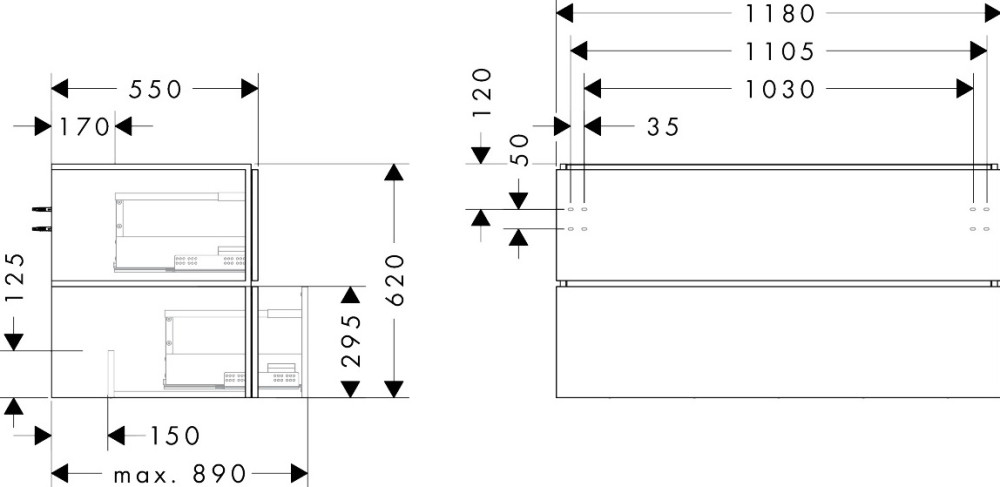 Тумба під раковину підвісна Hansgrohe Xilesa E 118х55 см МДФ сланцево-сірий матовий 54303760
