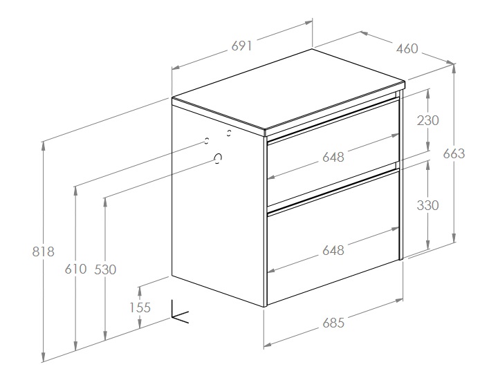 верхній ящик з вирізом під сифон, тумба без ручок (ручки можна купити окремо)