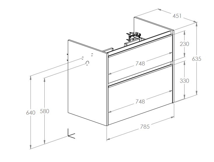 верхній ящик з вирізом під сифон, тумба без ручок (ручки можна купити окремо)