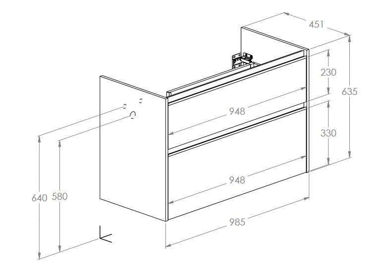верхній ящик з вирізом під сифон, тумба без ручок (ручки можна купити окремо)