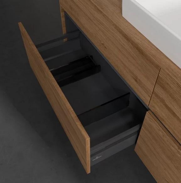 Витончені лінії меблів із колекції Collaro Villeroy & Boch надають ванній кімнаті стильної елегантності. Тумби під раковину, шафи-пенали та бічні шафи чудово поєднуються один з одним.другом за стилем. В якості опції на ванних меблів доступні ручки з високоякісного алюмінію з вбудованим світлодіодним підсвічуванням і плавним регулюванням світла, які стануть цікавим акцентом.