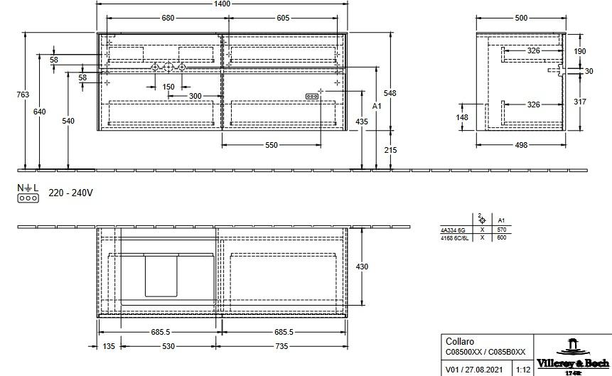 Тумба під раковину Villeroy & Boch Collaro 140х50 см ДСП сірий трюфель C08500VG