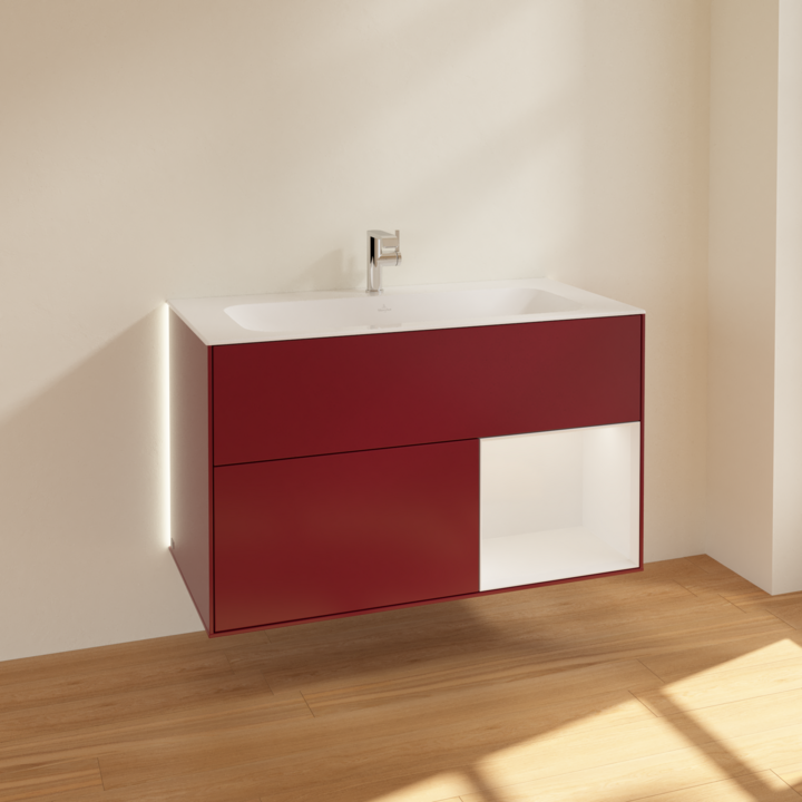 Тумба під раковину Villeroy & Boch Finion 99,6х49,8 см з підсвічуванням МДФ півонія матовий лак/глянсовий білий лак G040GFHB