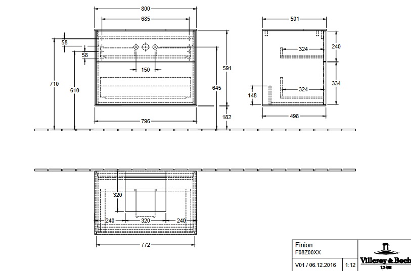 Тумба під раковину Villeroy & Boch Finion 80х50,1 см МДФ світло-сірий матовий лак/скло чорне матове F08200GJ