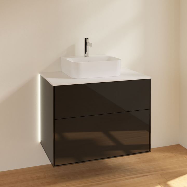 Тумба під раковину Villeroy & Boch Finion 80х50,1 см з підсвічуванням МДФ глянсовий чорний лак/скло біле матове