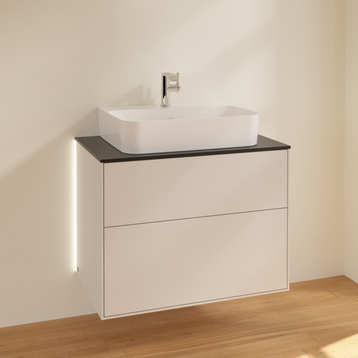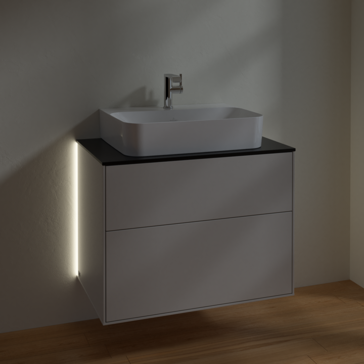 Тумба під раковину Villeroy & Boch Finion 80х50,1 см з підсвічуванням МДФ світло-сірий матовий лак/скло чорне матове