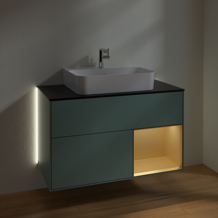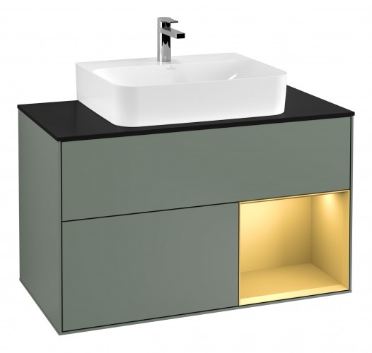 Тумба під раковину Villeroy & Boch Finion 100х50,1 см з підсвічуванням МДФ оливковий матовий лак/скло чорне матове G122HFGM
