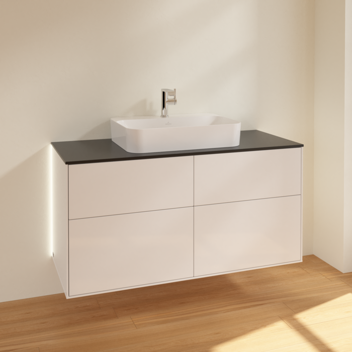 Тумба під раковину Villeroy & Boch Finion 120х50,1 см з підсвічуванням МДФ глянсовий білий лак/скло чорне матове