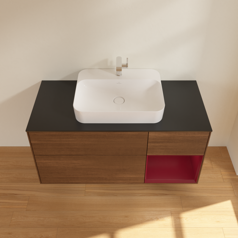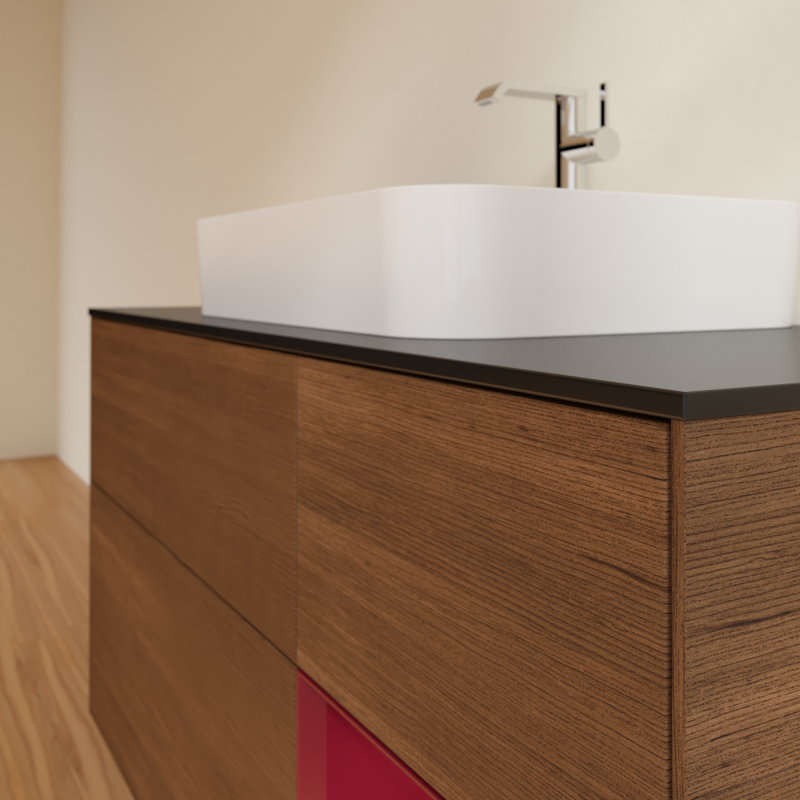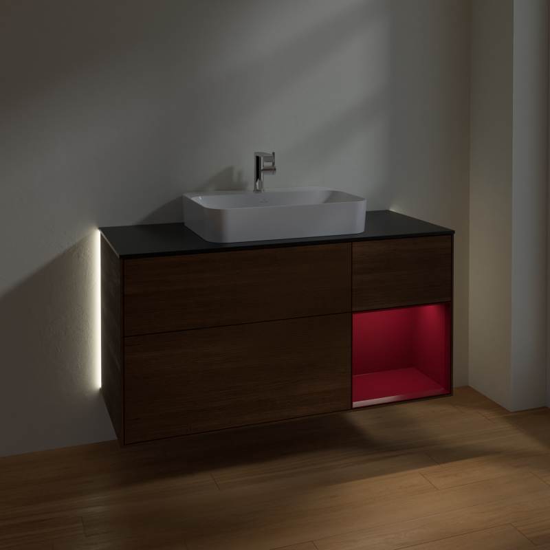 Тумба під раковину Villeroy & Boch Finion 120х50,1 см із підсвічуванням МДФ шпон волоського горіха/скло чорне матове G422HBGN