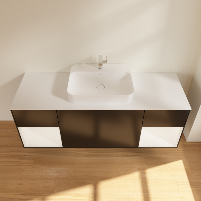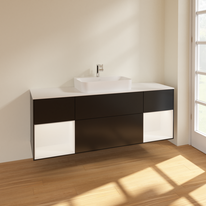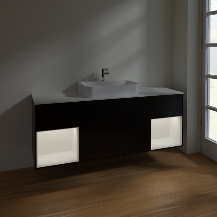 Тумба під раковину Villeroy & Boch Finion 160х50,1 см із підсвічуванням МДФ чорний матовий лак/скло біле матове F451MTPD