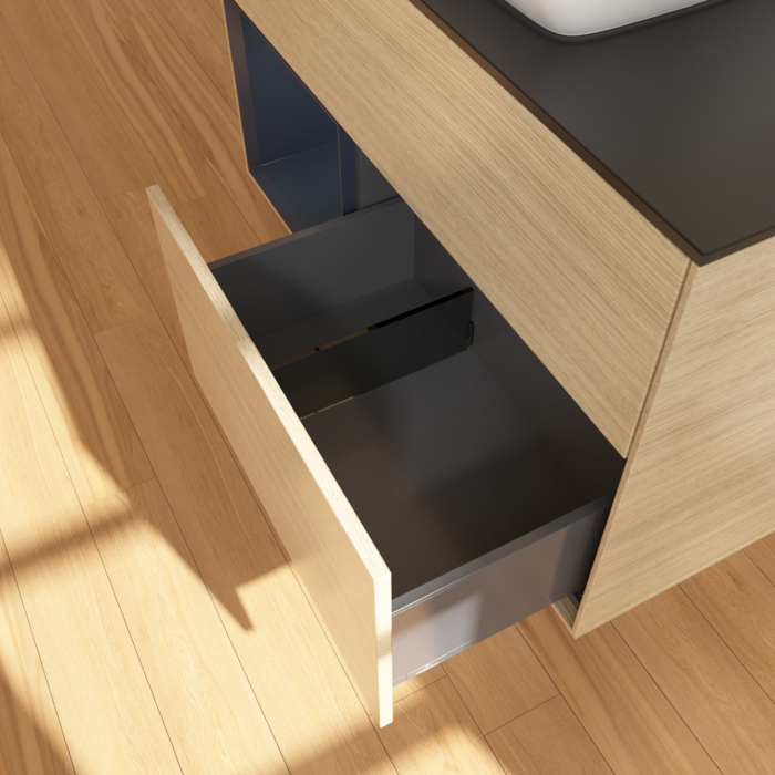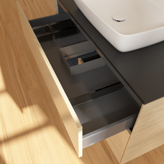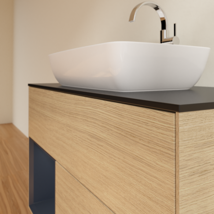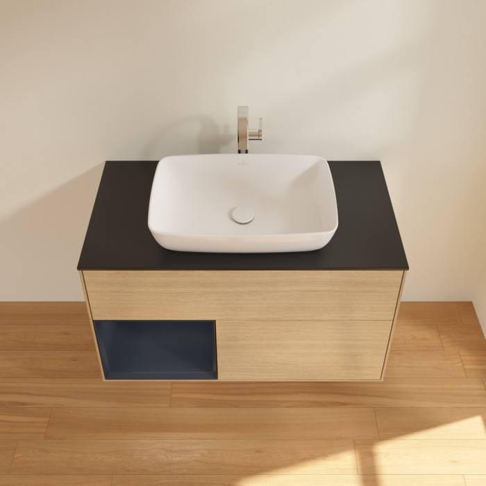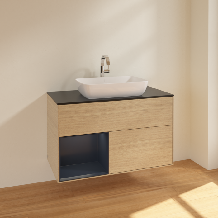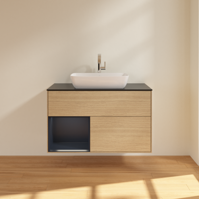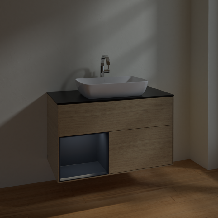 Тумба під раковину Villeroy & Boch Finion 100х50,1 см із підсвічуванням МДФ шпон дуба/скло чорне матове F772HGPC