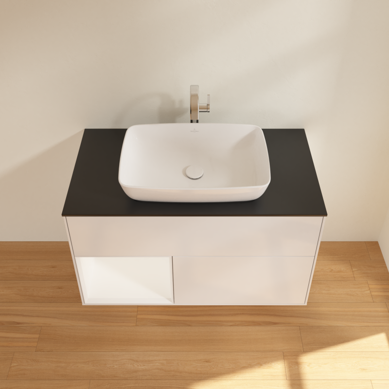 Тумба під раковину Villeroy & Boch Finion 100х50,1 см з підсвіткою МДФ білий глянцевий лак/скло чорне матове G772MTGF