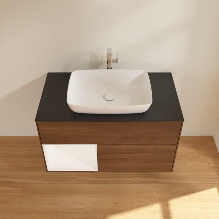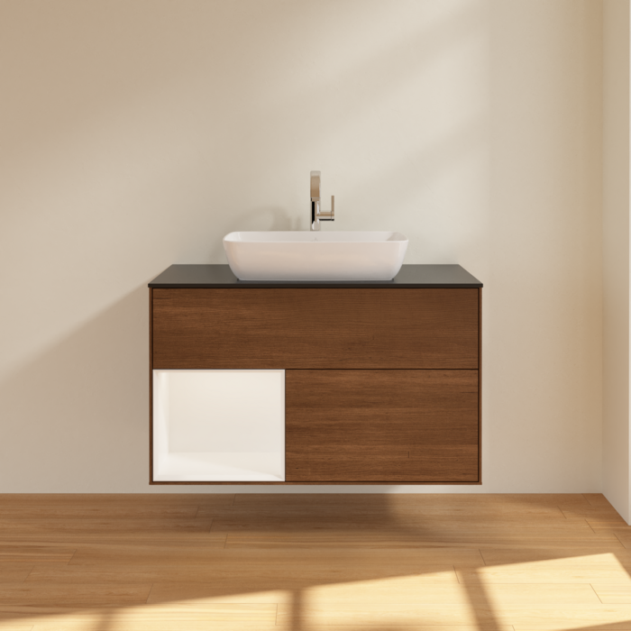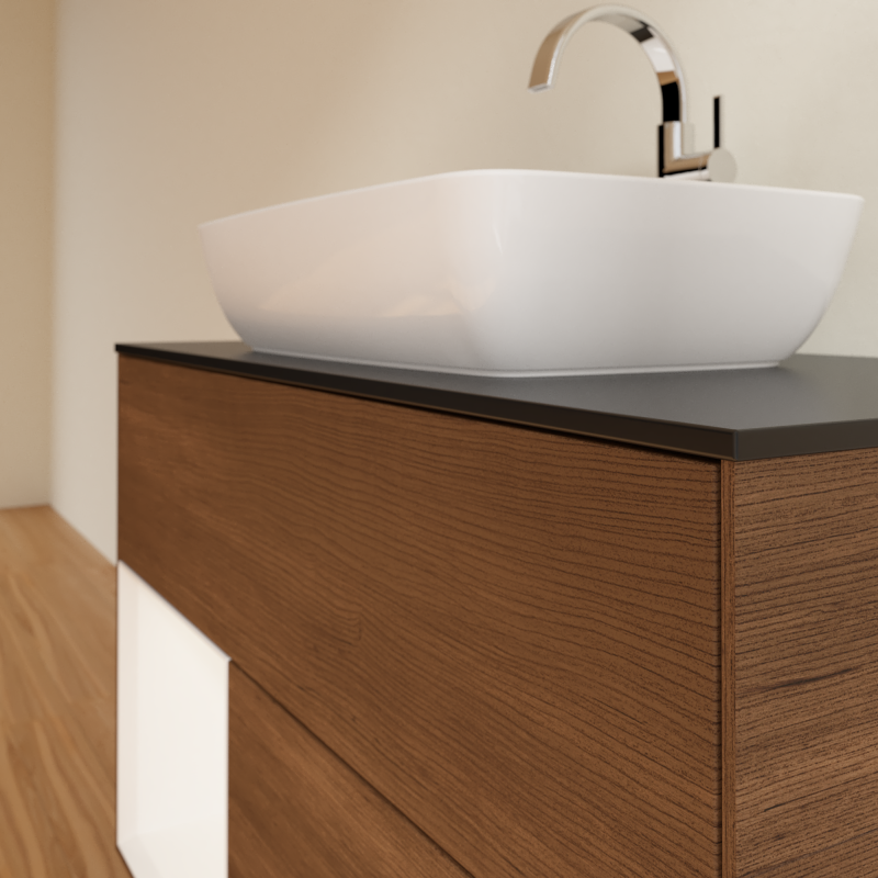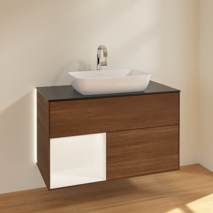 Тумба під раковину Villeroy & Boch Finion 100х50,1 см із підсвічуванням МДФ шпон волоського горіха/скло чорне матове G772MTGN