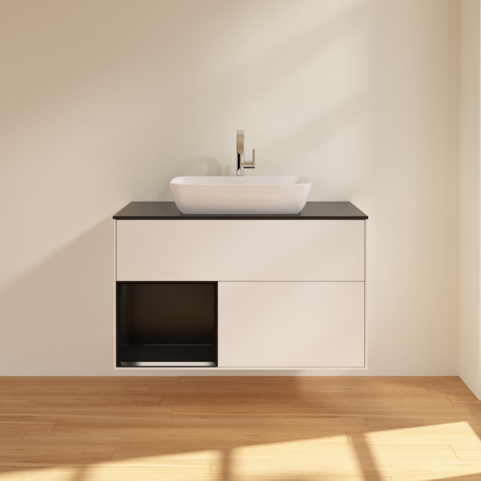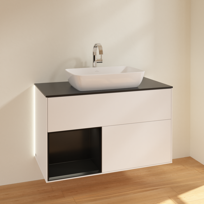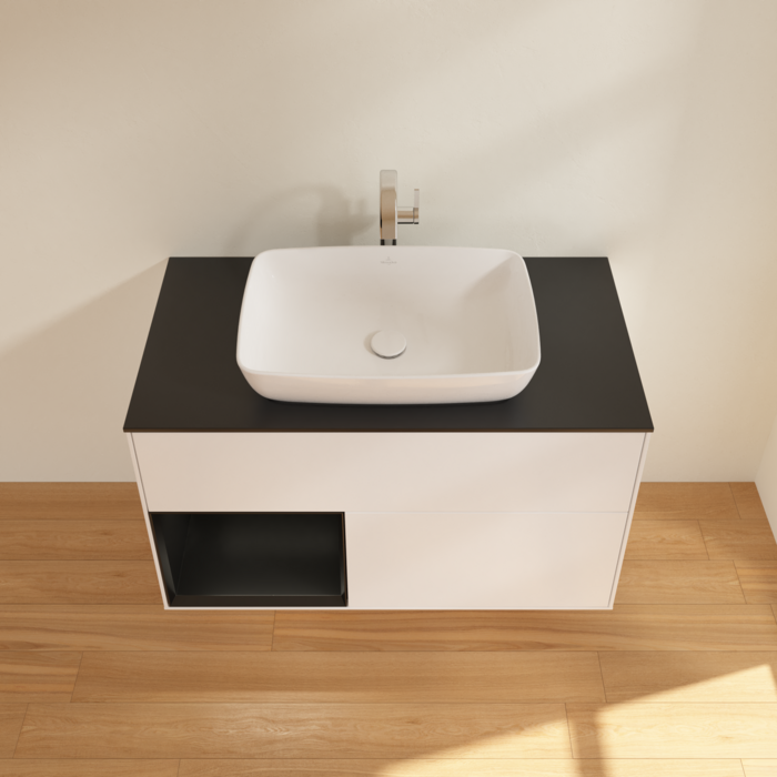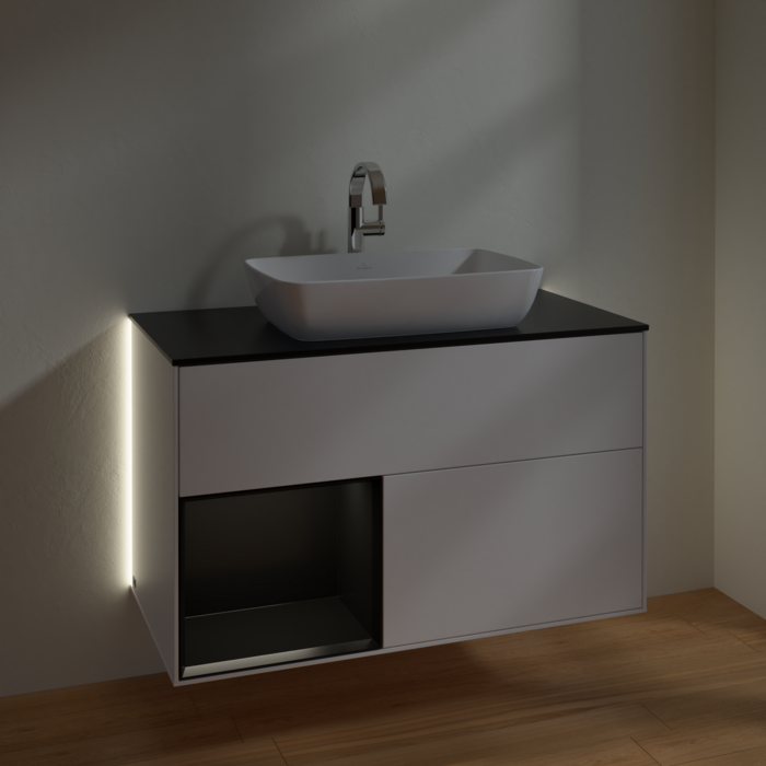Тумба під раковину Villeroy & Boch Finion 100х50,1 см із підсвічуванням МДФ білий матовий лак/скло чорне матове G772PDMT