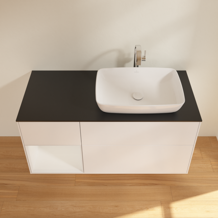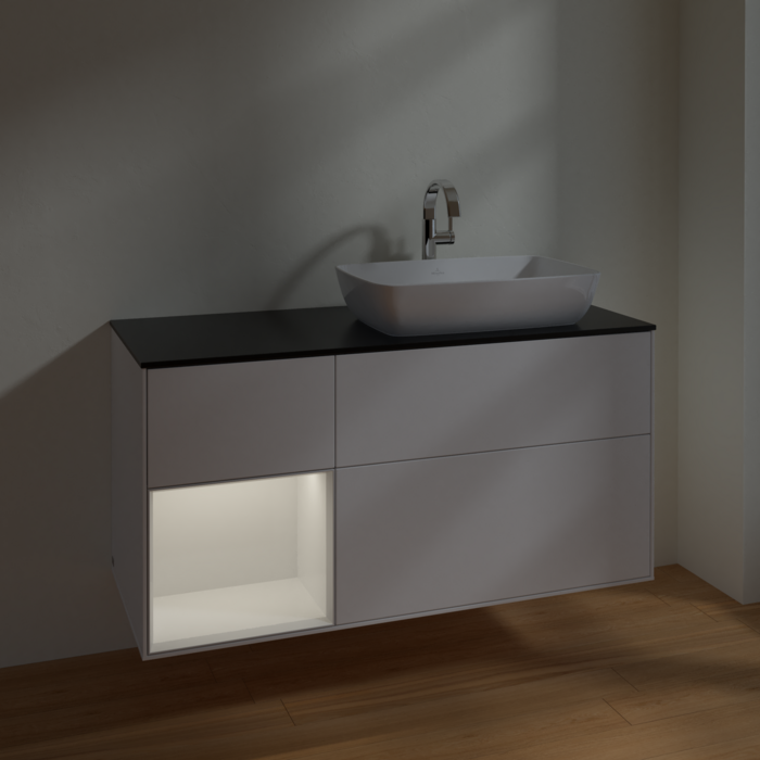 Тумба під раковину Villeroy & Boch Finion 120х50,1 см із підсвічуванням МДФ білий матовий лак/скло чорне матове F802GFMT