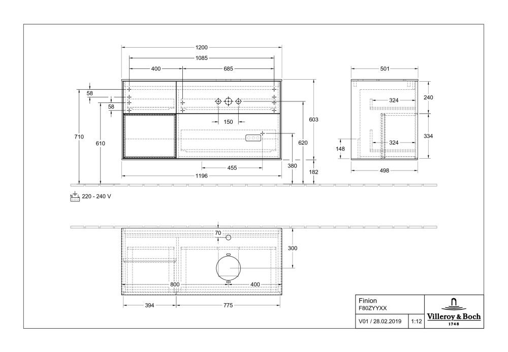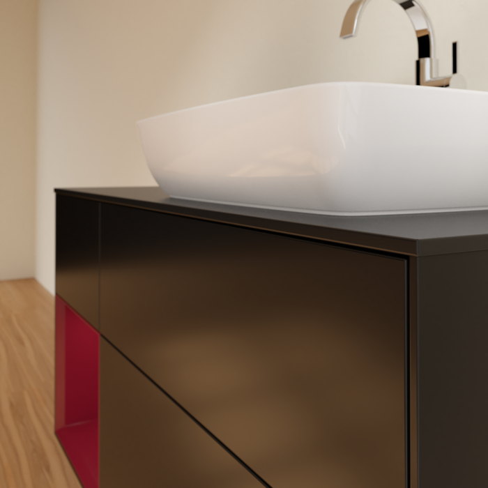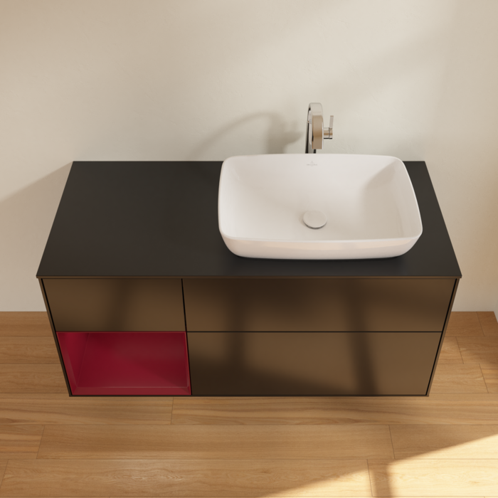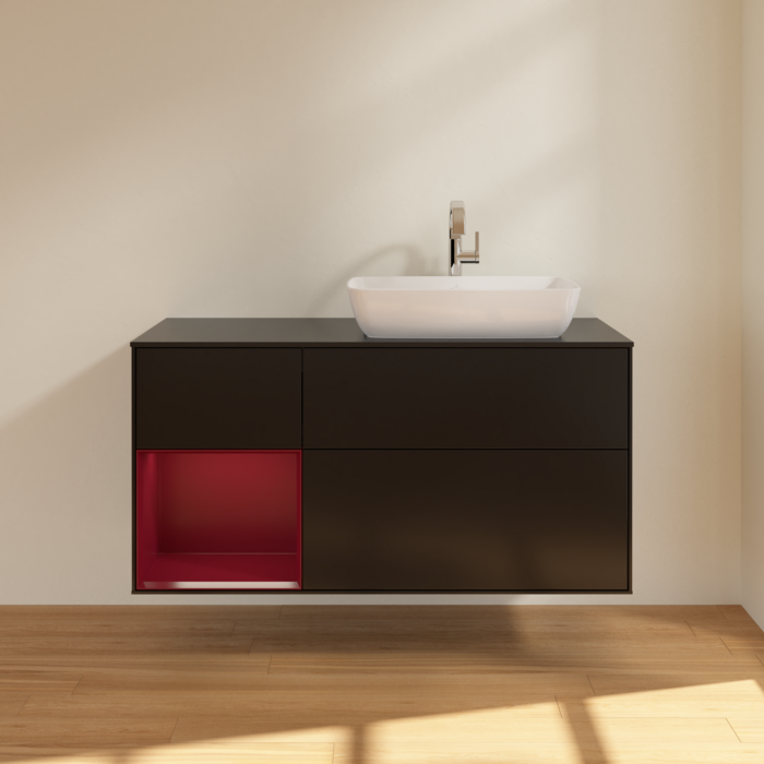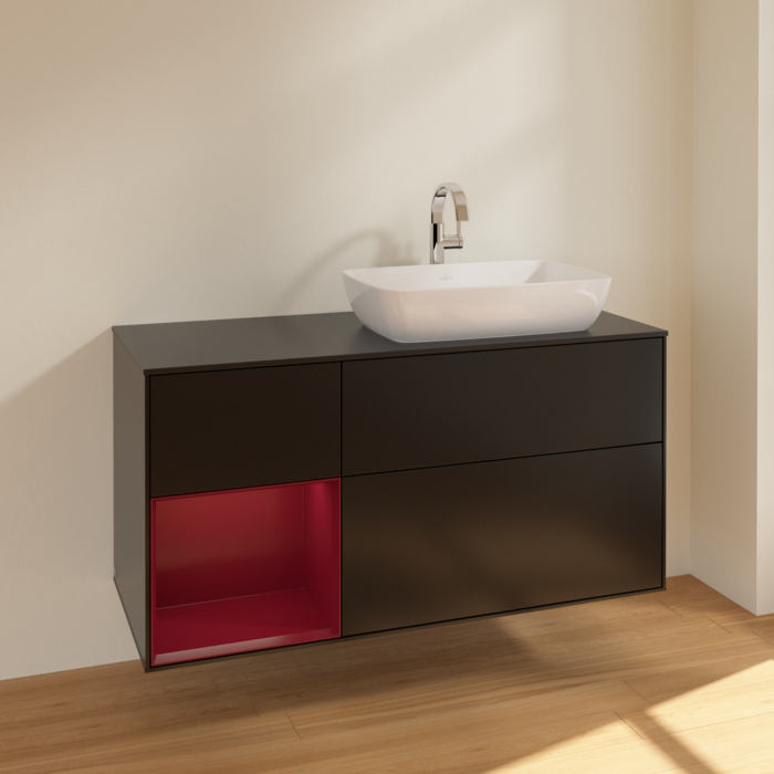 Тумба під раковину Villeroy & Boch Finion 120х50,1 см із підсвічуванням МДФ чорний матовий лак/скло чорне матове F802HBPD