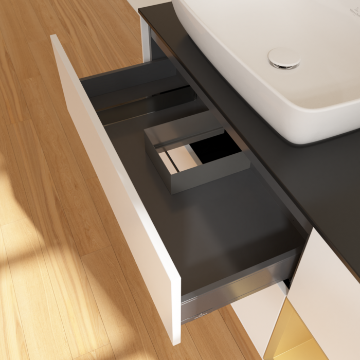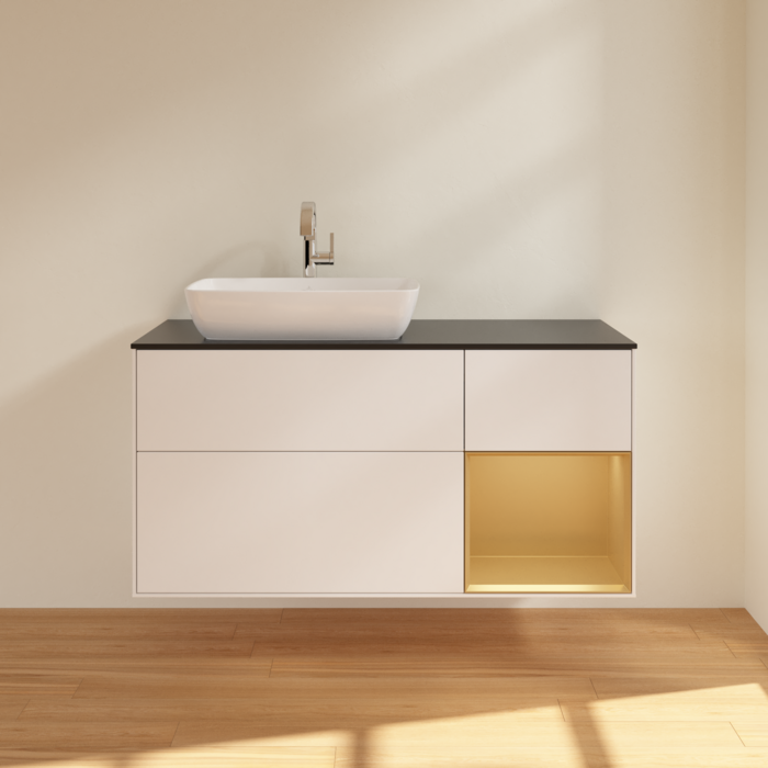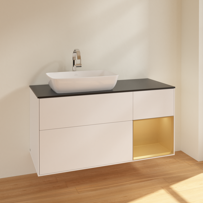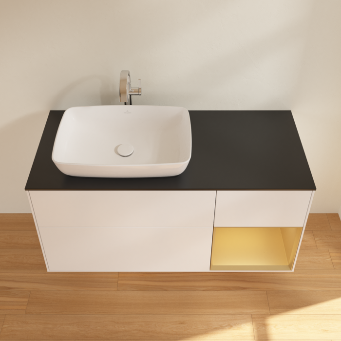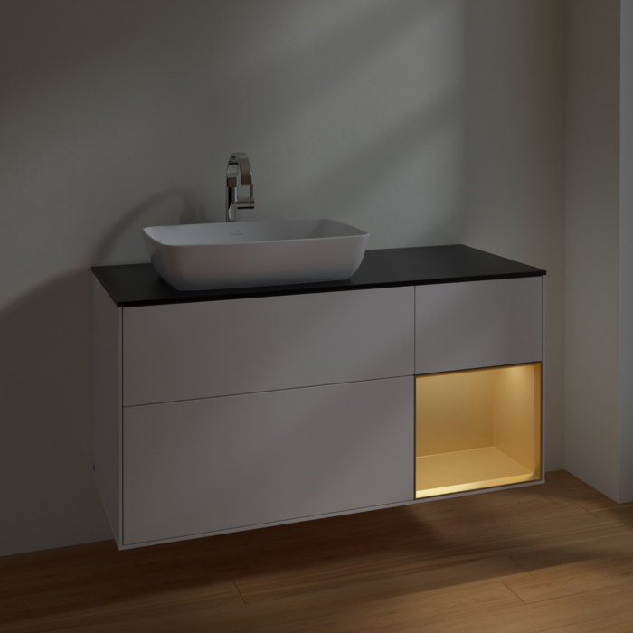 Тумба під раковину Villeroy & Boch Finion 120х50,1 см із підсвічуванням МДФ білий матовий лак/скло чорне матове F812HFMT