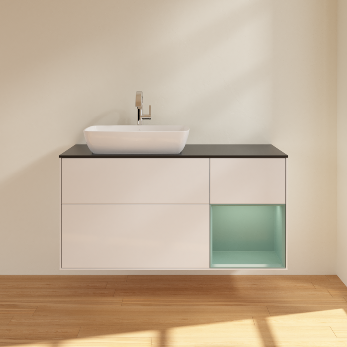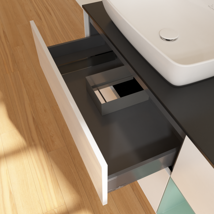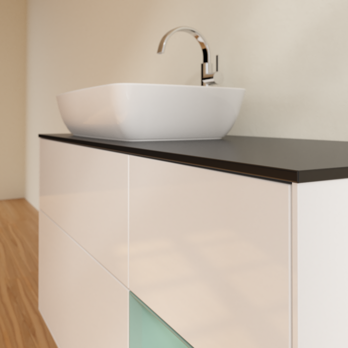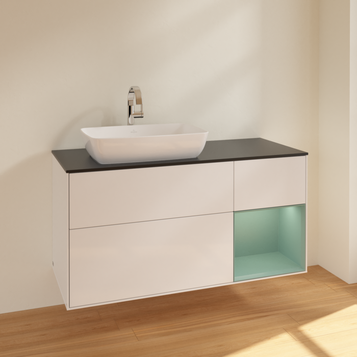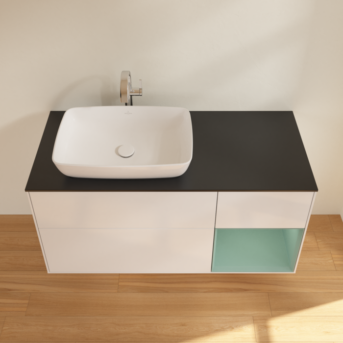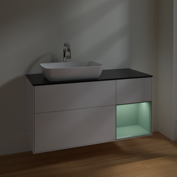 Тумба під раковину Villeroy & Boch Finion 120х50,1 см з підсвіткою МДФ білий глянцевий лак/скло чорне матове F812GMGF