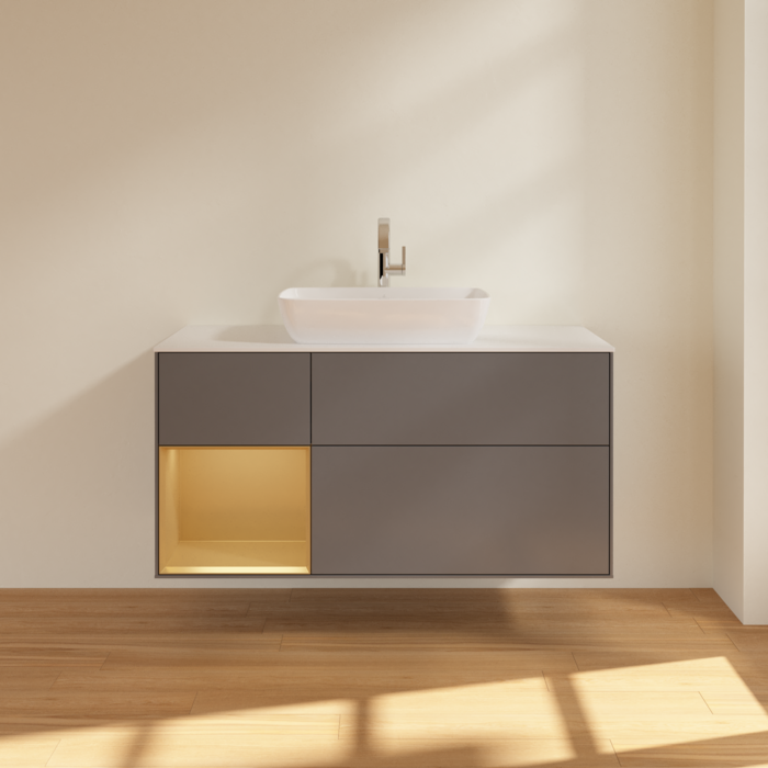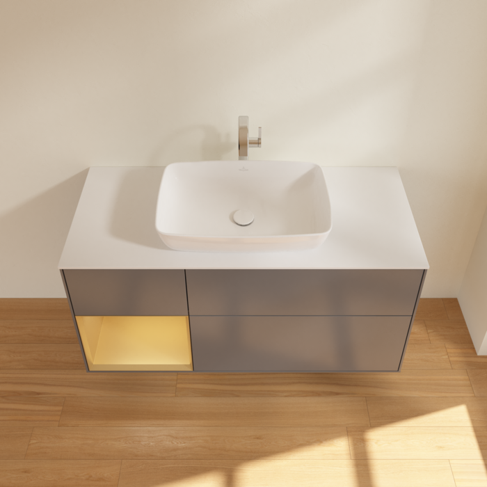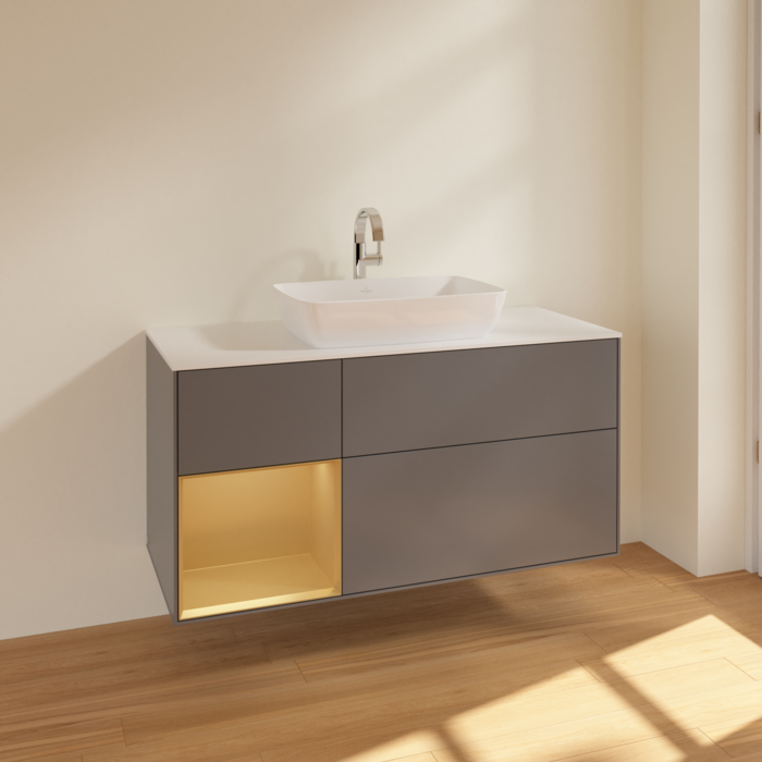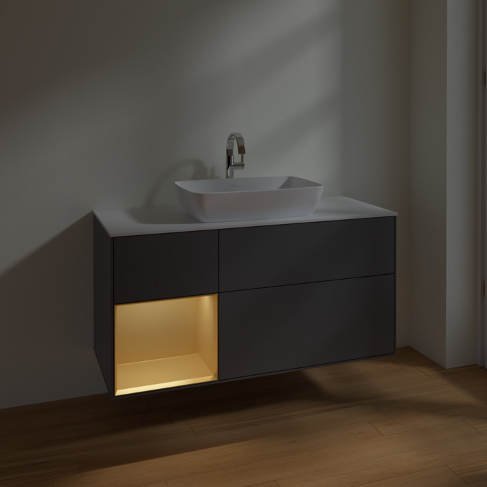 Тумба під раковину Villeroy & Boch Finion 120х50,1 см із підсвічуванням МДФ антрацит матовий лак/скло біле матове F821HFGK
