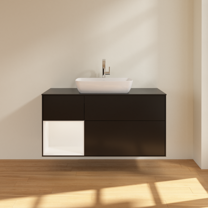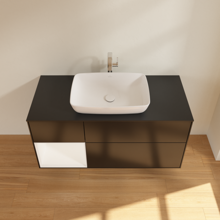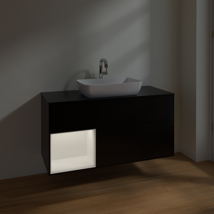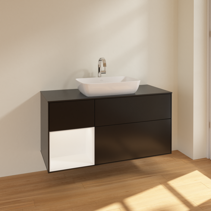 Тумба під раковину Villeroy & Boch Finion 120х50,1 см із підсвічуванням МДФ чорний матовий лак/скло чорне матове F822MTPD