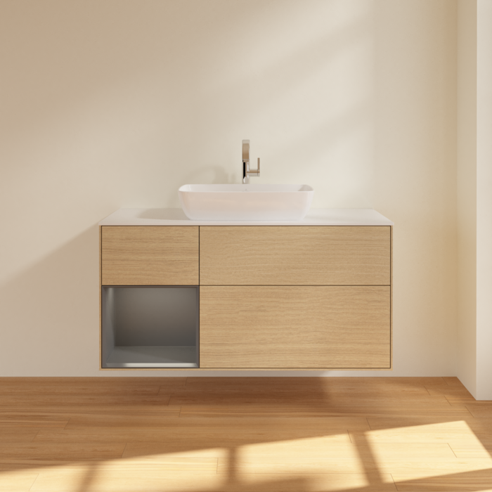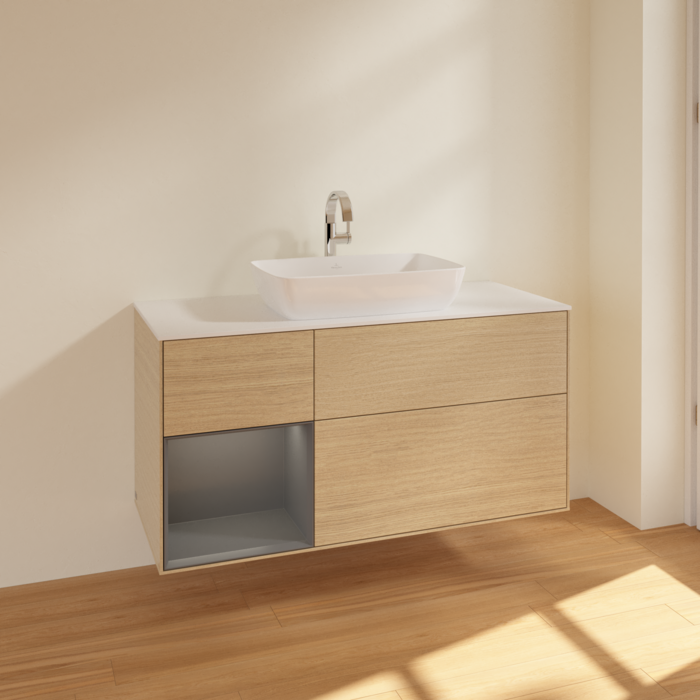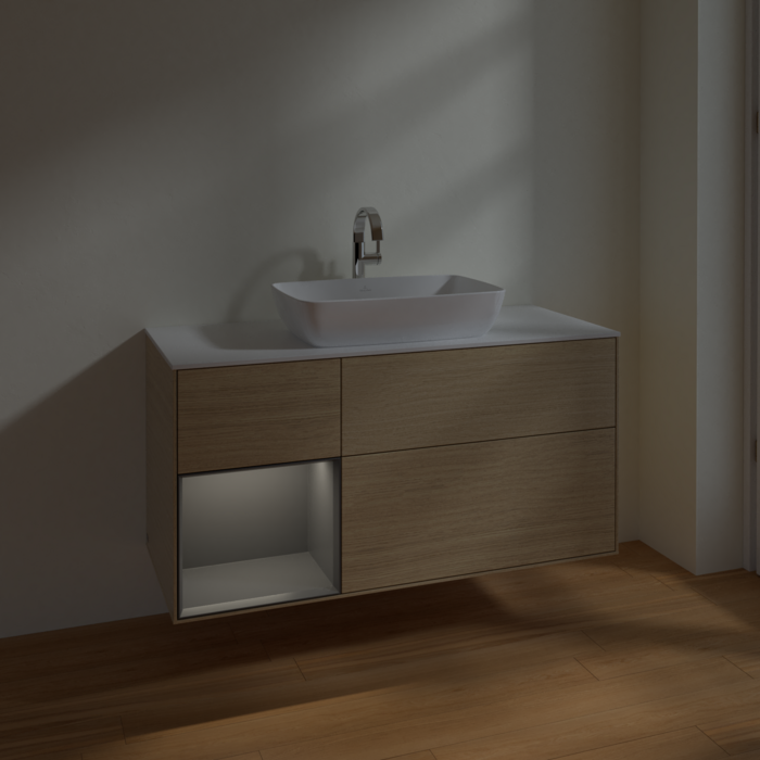 Тумба під раковину Villeroy & Boch Finion 120х50,1 см із підсвічуванням МДФ шпон дуба/скло біле матове F821GKPC