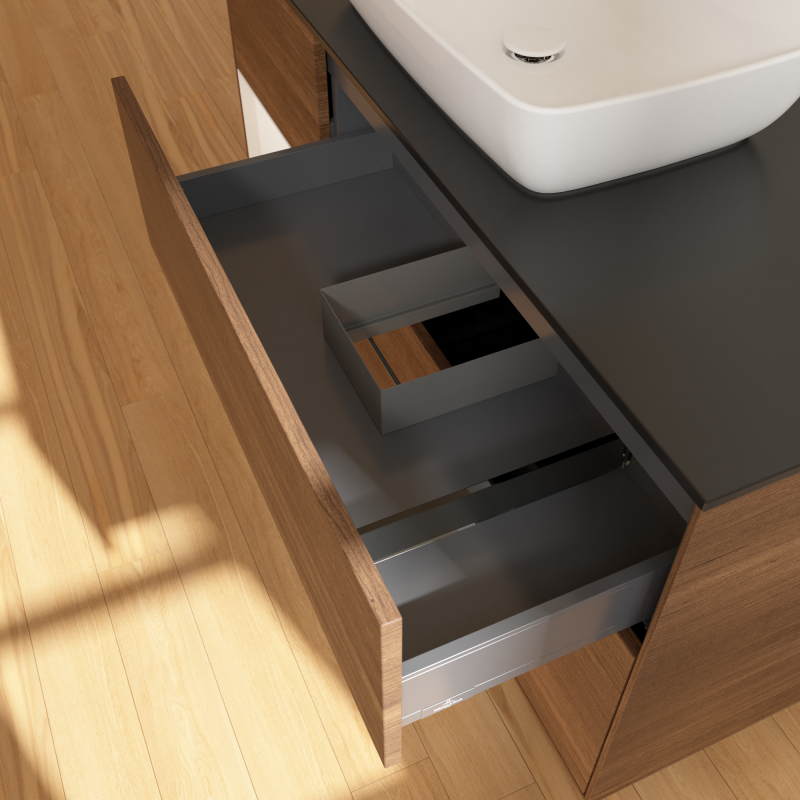 Тумба під раковину Villeroy & Boch Finion 120х50,1 см із підсвічуванням МДФ шпон волоського горіха/скло чорне матове G822MTGN