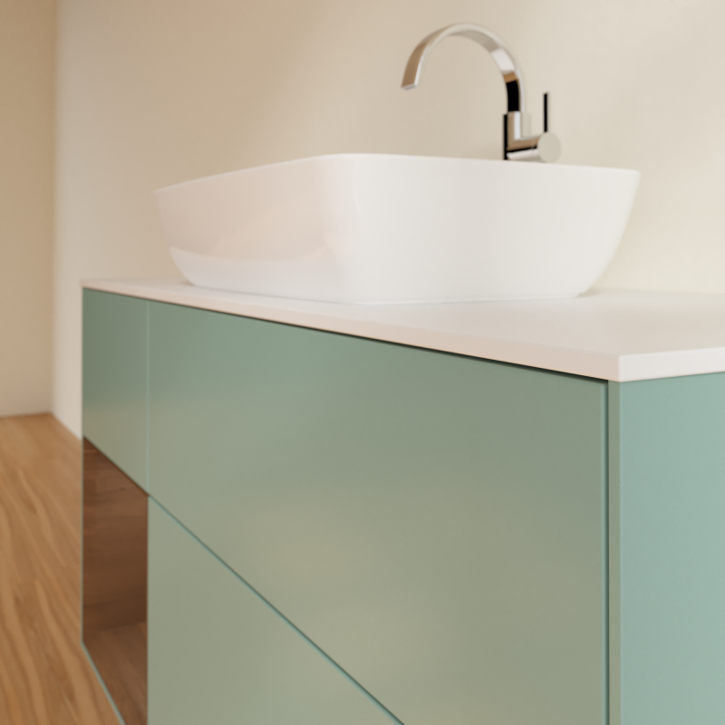 Тумба під раковину Villeroy & Boch Finion 120х50,1 см із підсвічуванням МДФ оливковий матовий лак/скло біле матове G821GNGM