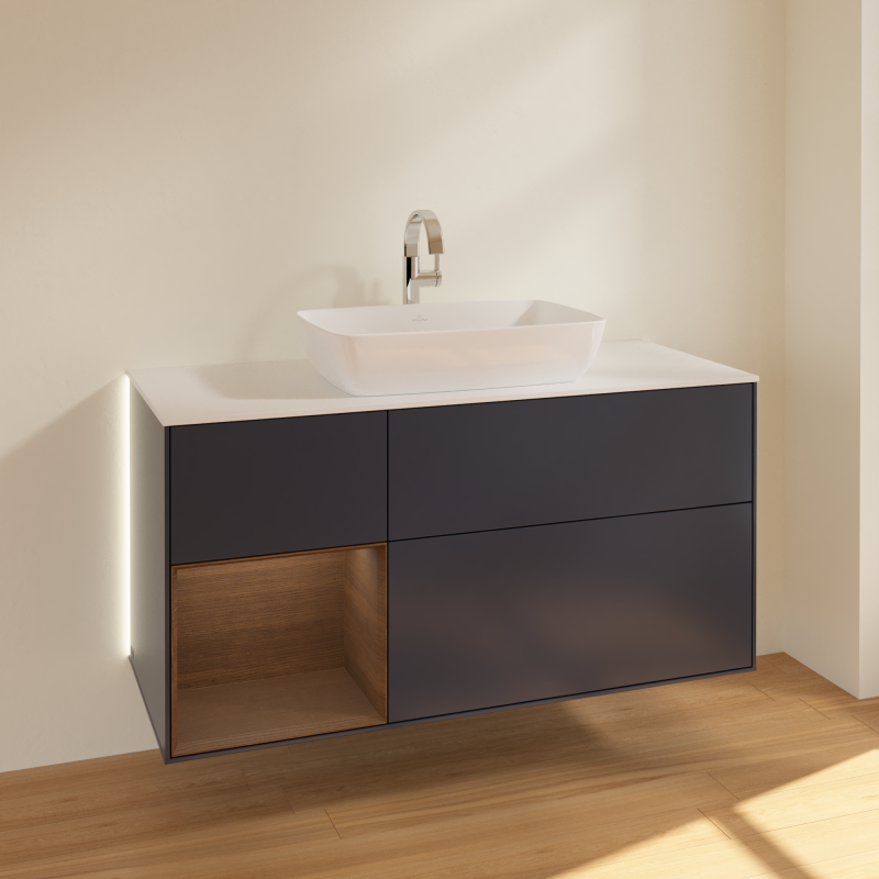 Тумба під раковину Villeroy & Boch Finion 120х50,1 см із підсвічуванням МДФ темно-синій матовий лак/скло біле матове G821GNHG
