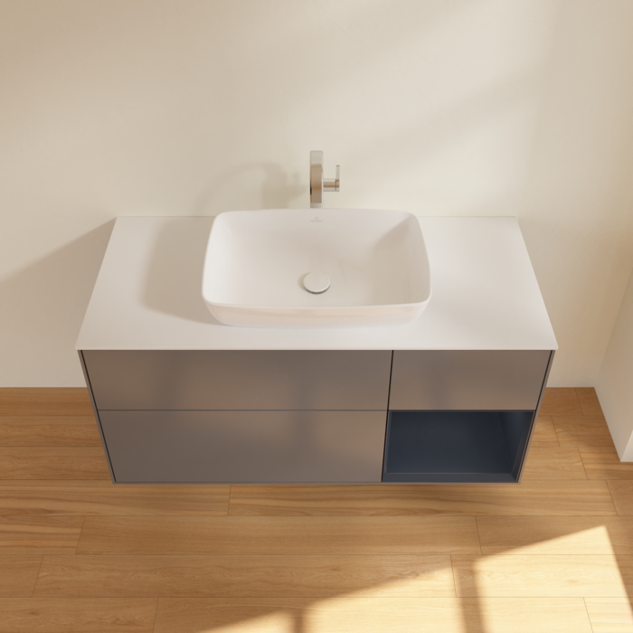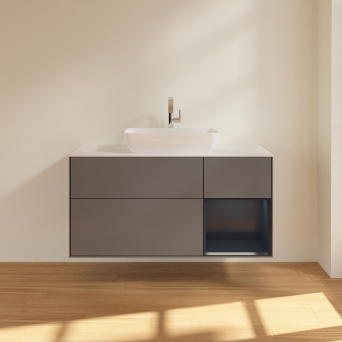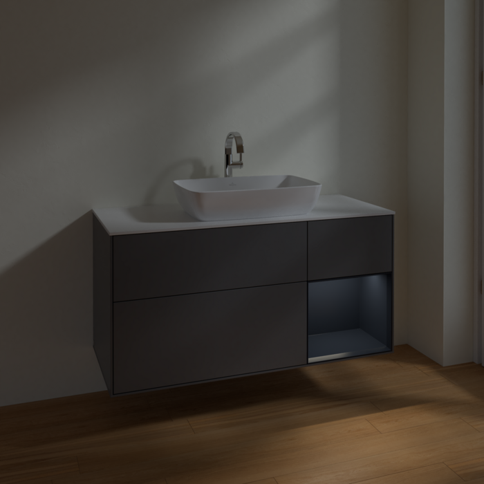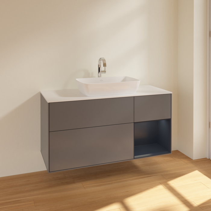 Тумба під раковину Villeroy & Boch Finion 120х50,1 см із підсвічуванням МДФ антрацит матовий лак/скло біле матове F831HGGK