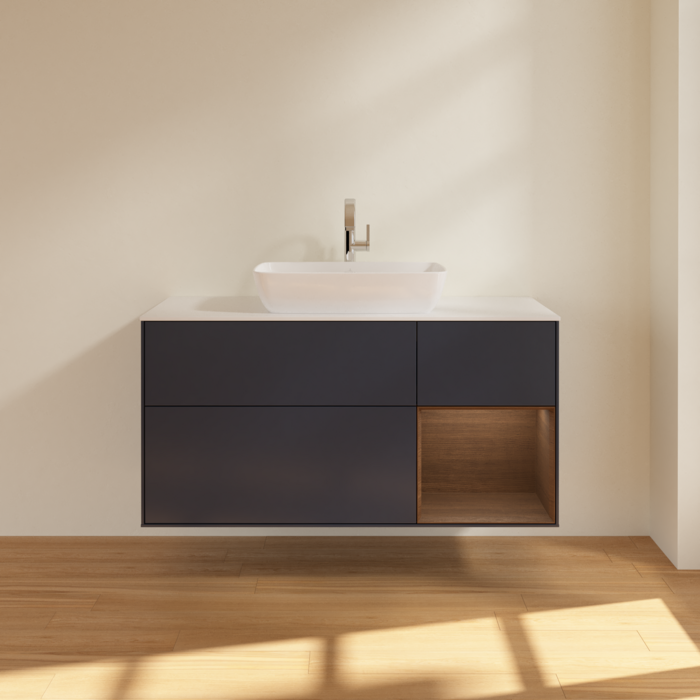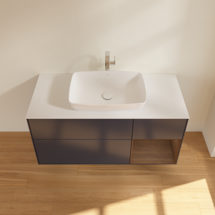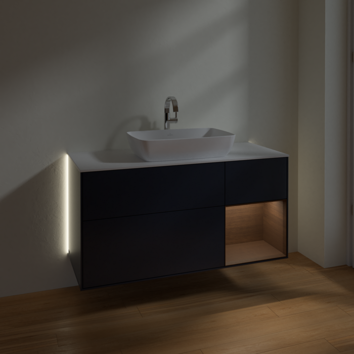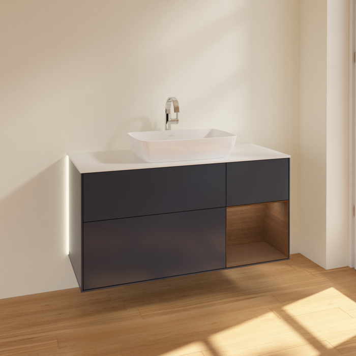 Тумба під раковину Villeroy & Boch Finion 120х50,1 см із підсвічуванням МДФ темно-синій матовий лак/скло біле матове G831GNHG