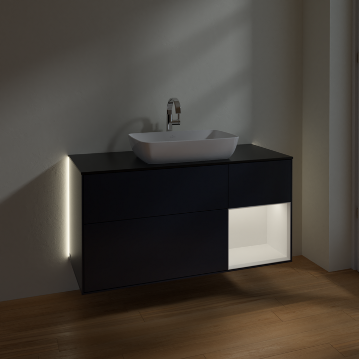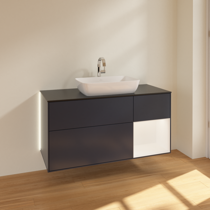 Тумба під раковину Villeroy & Boch Finion 120х50,1 см із підсвічуванням МДФ темно-синій матовий лак/скло чорне матове G832MTHG