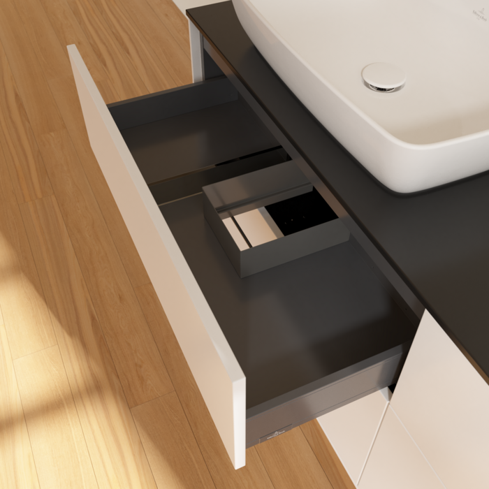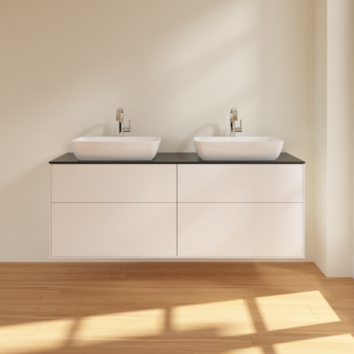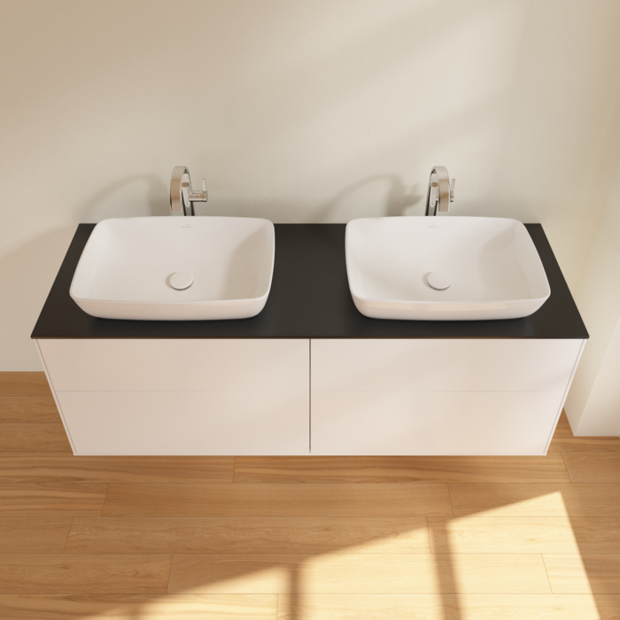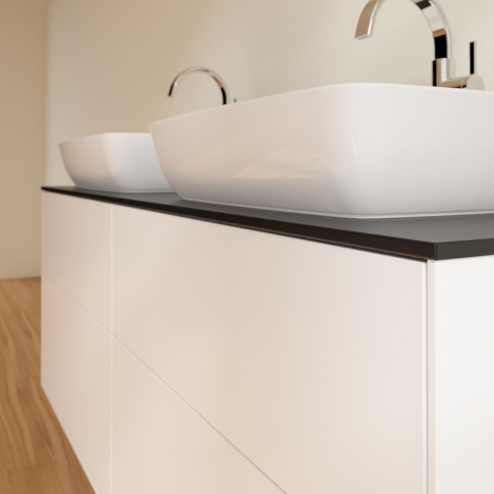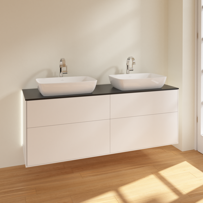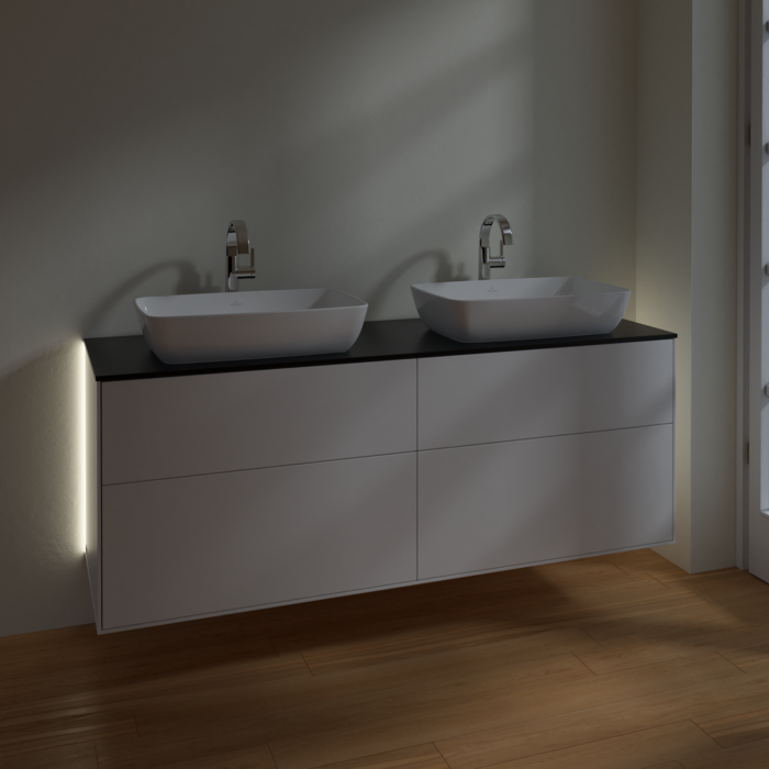 Тумба під раковину Villeroy & Boch Finion 160х50,1 см із підсвічуванням МДФ білий матовий лак/скло чорне матове G84200MT