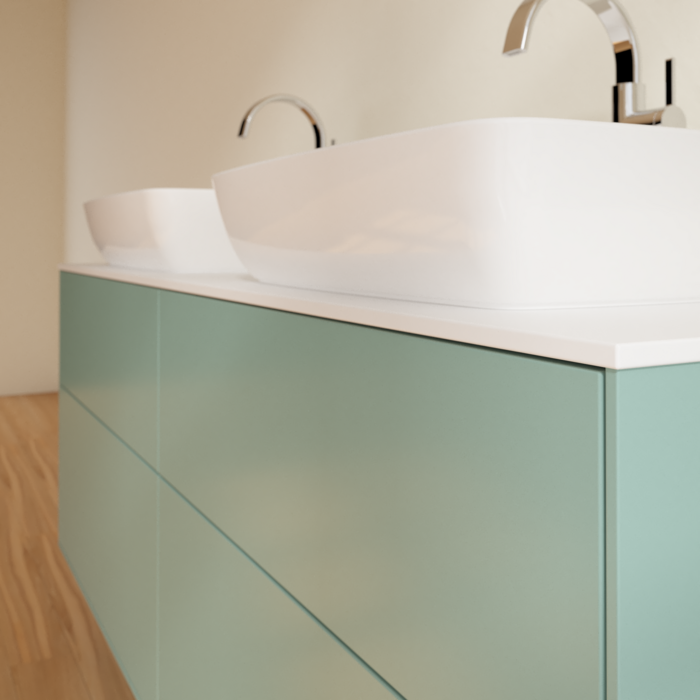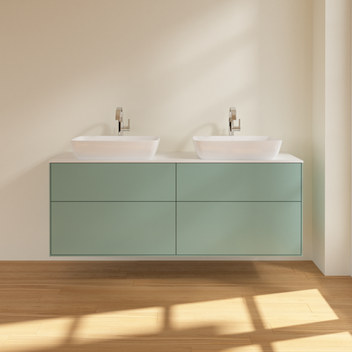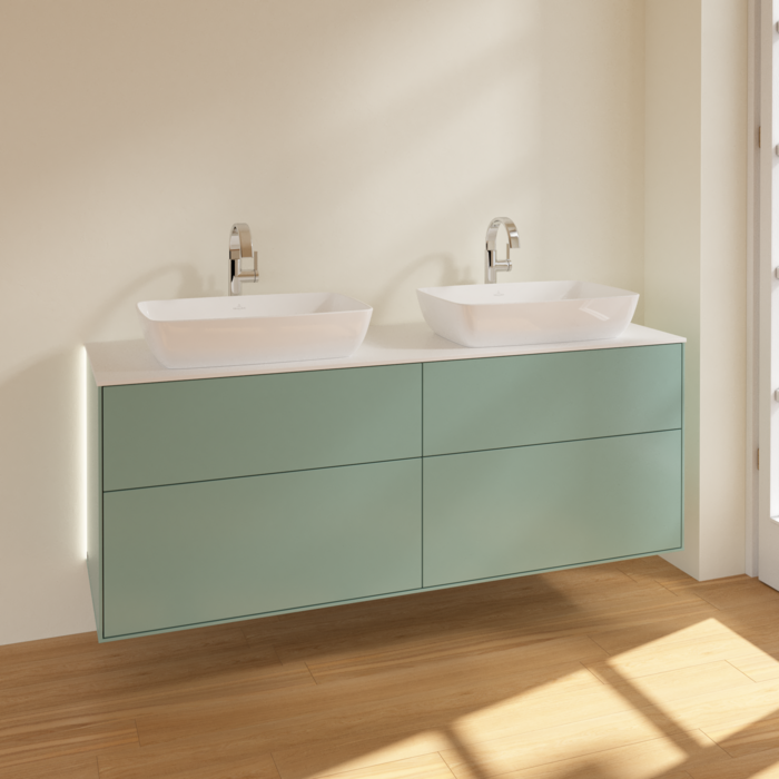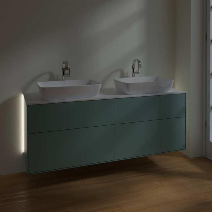 Тумба під раковину Villeroy & Boch Finion 160х50,1 см із підсвічуванням МДФ оливковий матовий лак/скло біле матове G84100GM