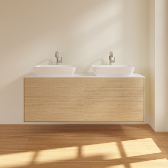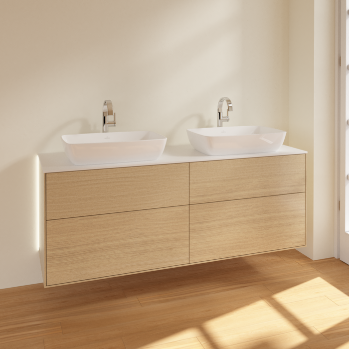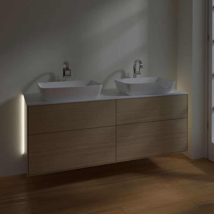Тумба під раковину Villeroy & Boch Finion 160х50,1 см із підсвічуванням МДФ шпон дуба/скло біле матове G84100PC