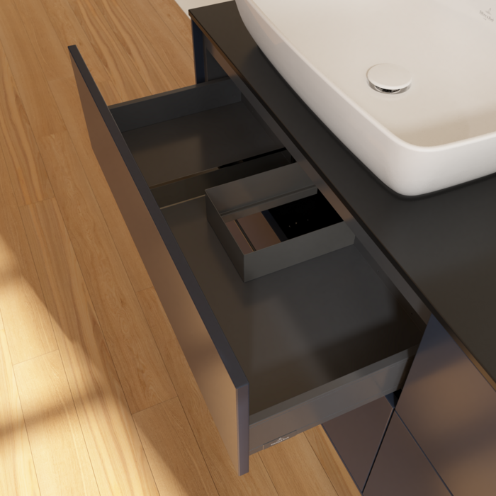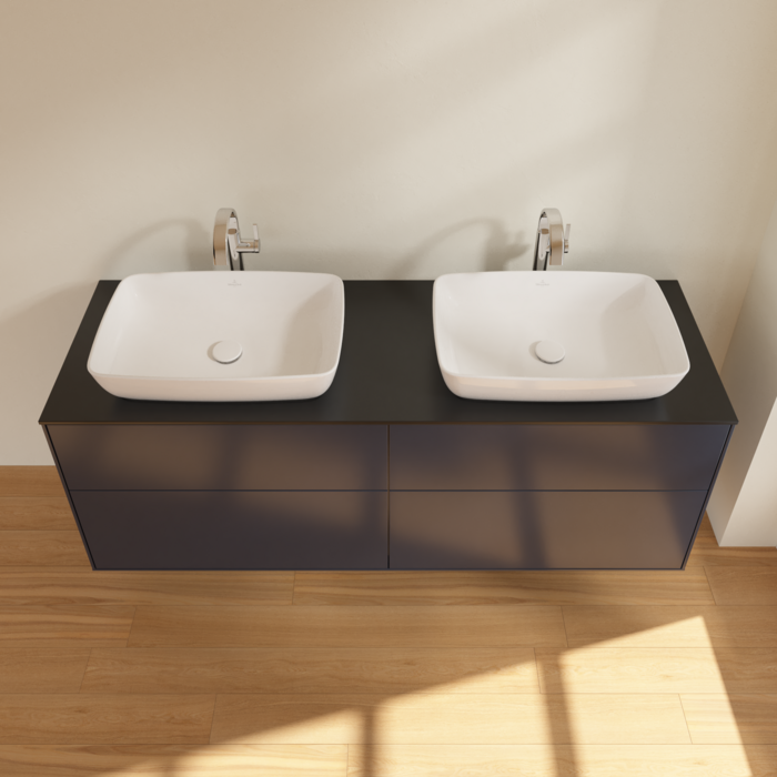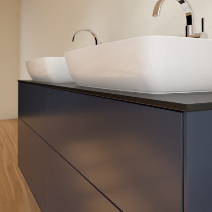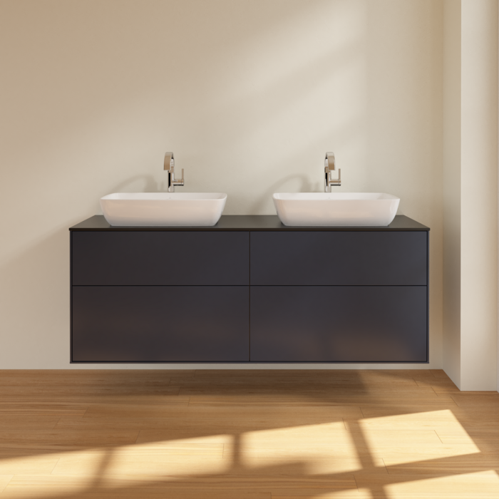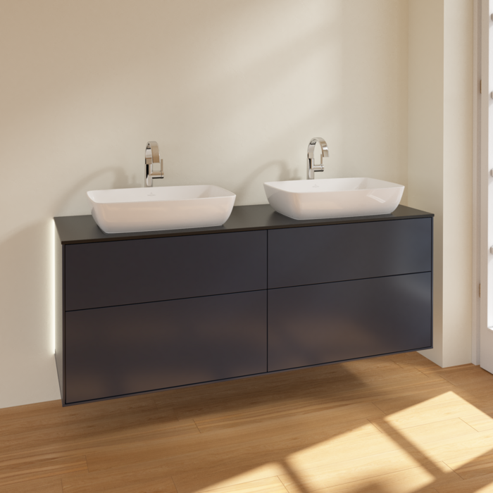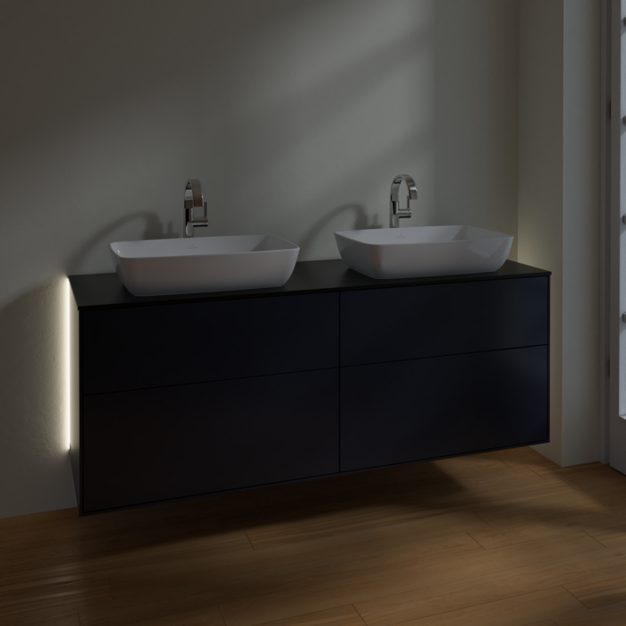Тумба під раковину Villeroy & Boch Finion 160х50,1 см із підсвічуванням МДФ темно-синій матовий лак/скло чорне матове G84200HG