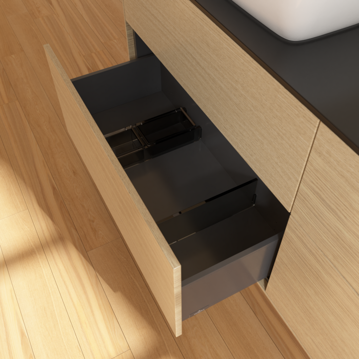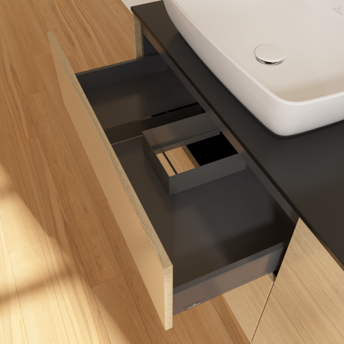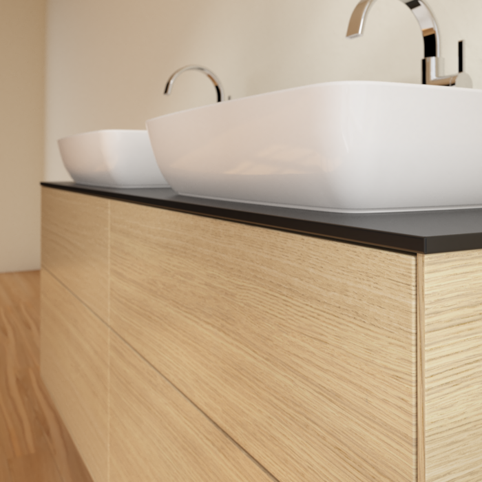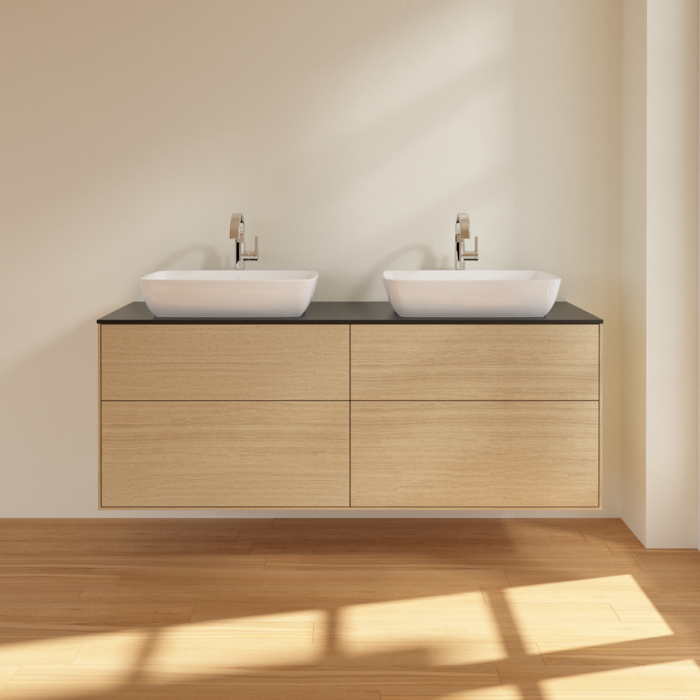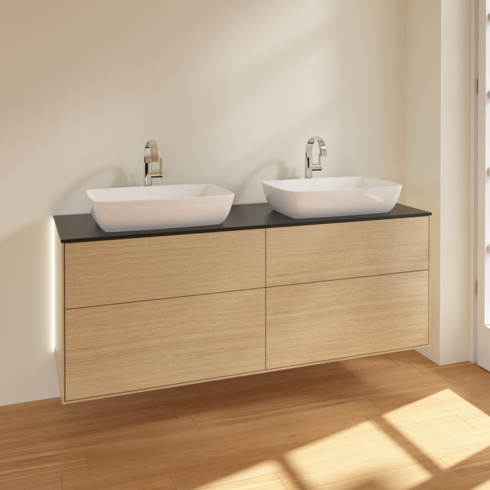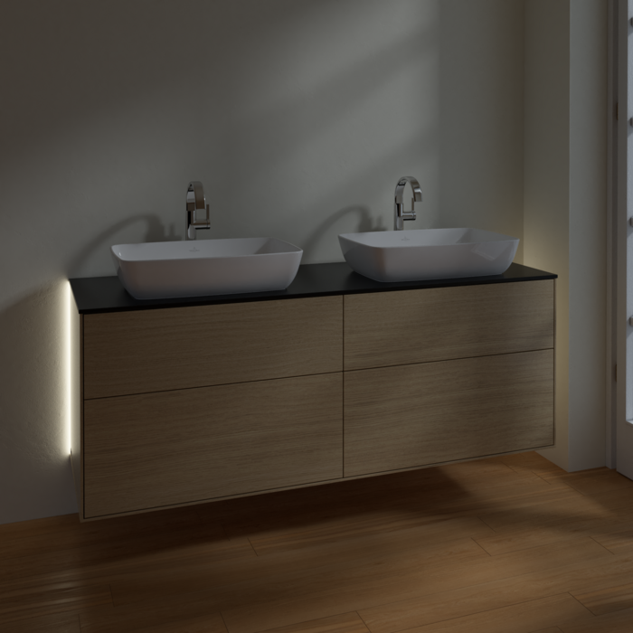 Тумба під раковину Villeroy & Boch Finion 160х50,1 см із підсвічуванням МДФ шпон дуба/скло чорне матове G84200PC