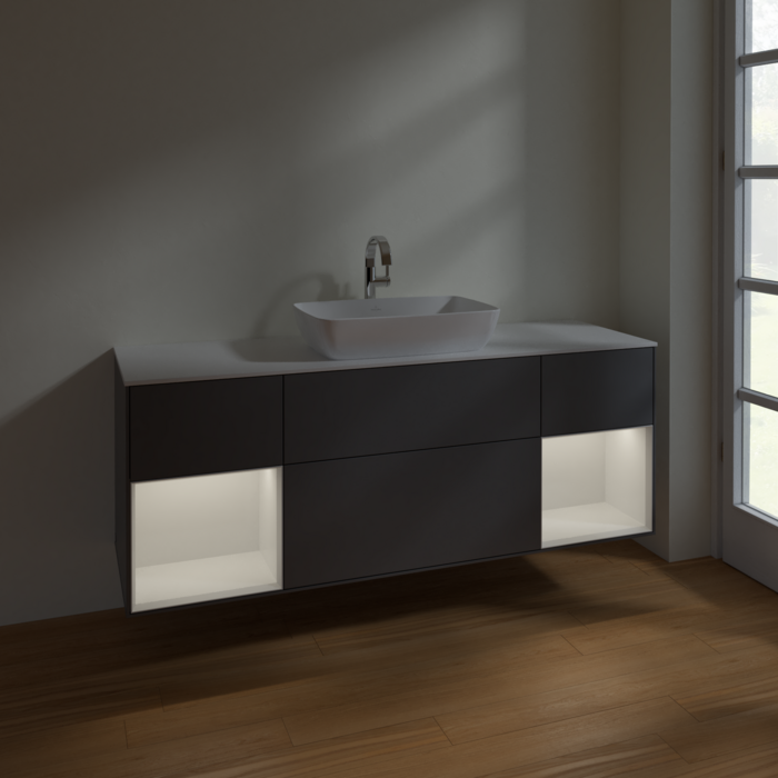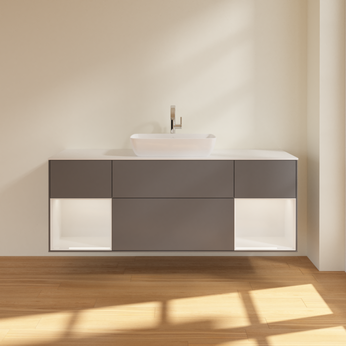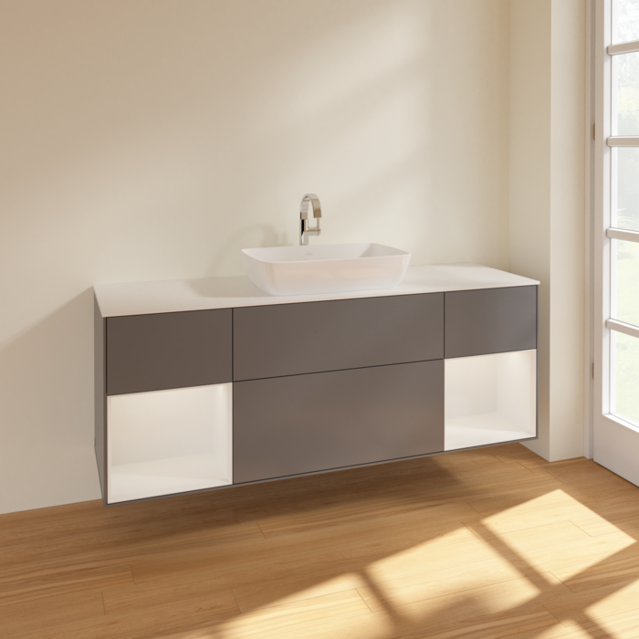 Тумба під раковину Villeroy & Boch Finion 160х50,1 см з підсвічуванням антрацит матовий лак/скло біле матове F861GFGK