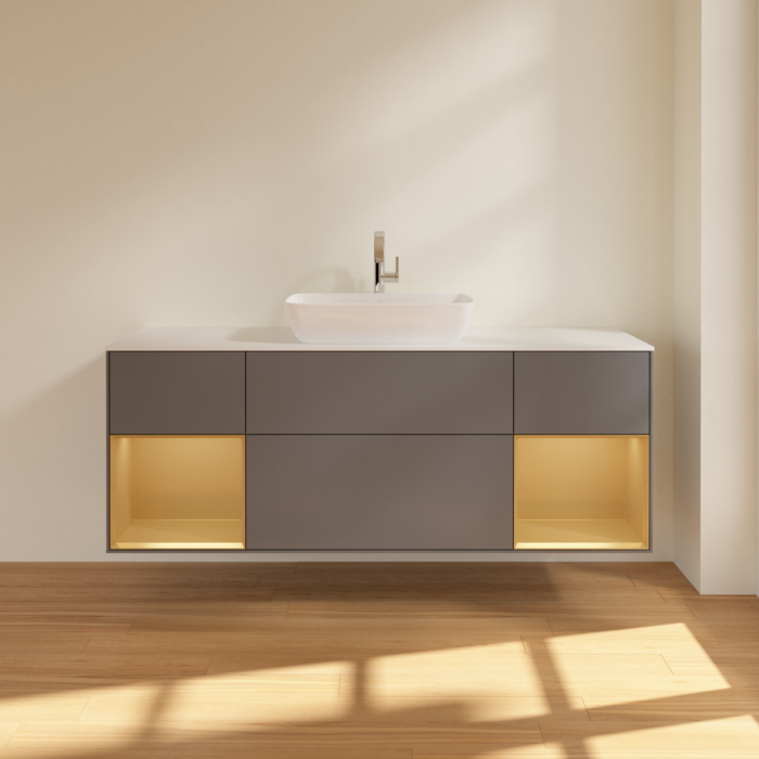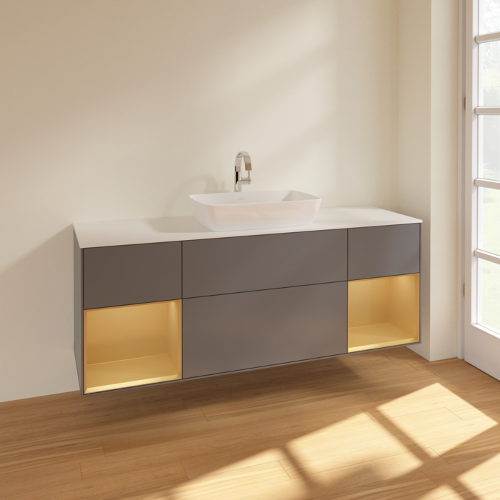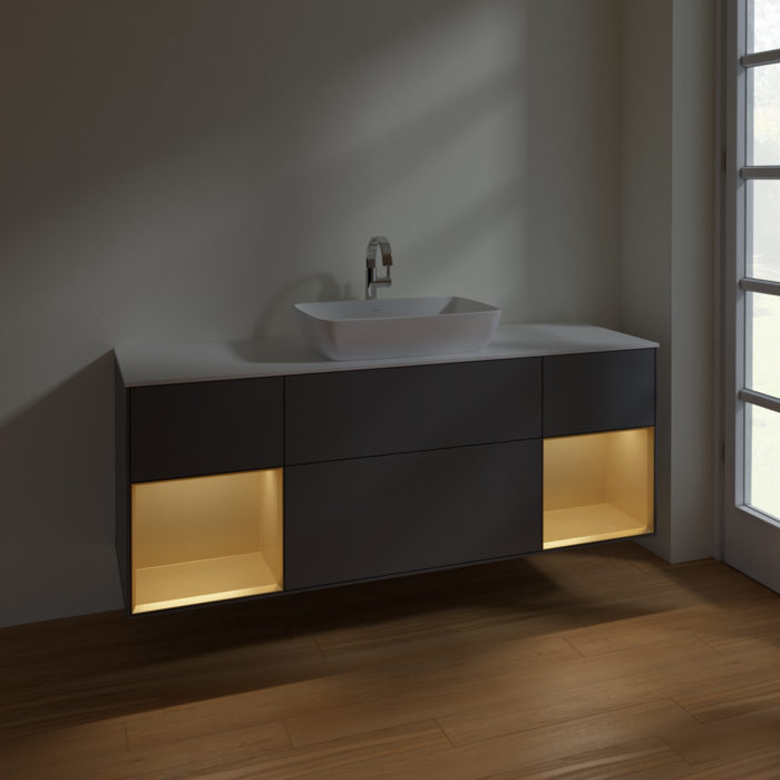 Тумба під раковину Villeroy & Boch Finion 160х50,1 см із підсвічуванням МДФ антрацит матовий лак/скло біле матове F861HFGK
