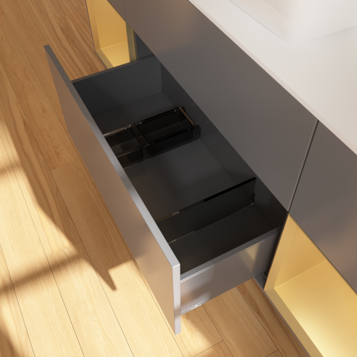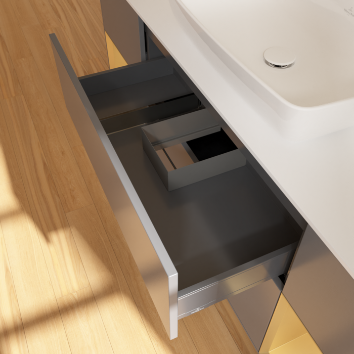 практичні внутрішні розділи. подані внутрішні перегородки у ванних кімнатах для влаштувань та Boch можуть індивідуально підтримувати замовлення у ванній кімнаті. Різні елементи, такі як регульоване склоПерегородки та коробки для аксесуарів різного розміру забезпечують порядок та хороший огляд. Завдяки практичним внутрішнім розділам ви можете знайти часто використовувані аксесуари для ванної кімнати на перший погляд.