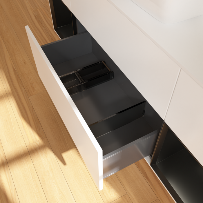 4 ящики (1 перегородка з високим склом, 3 перегородки з низьким рівнем скла, 1 контейнер для аксесуарів S, 1Контейнер для аксесуарів M, 2 розсувні відділи з килимком анти -слизу)