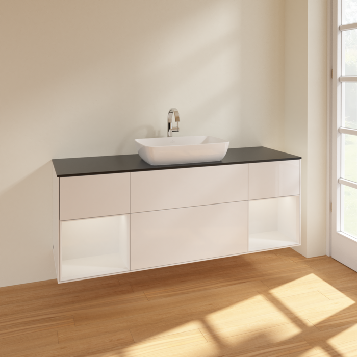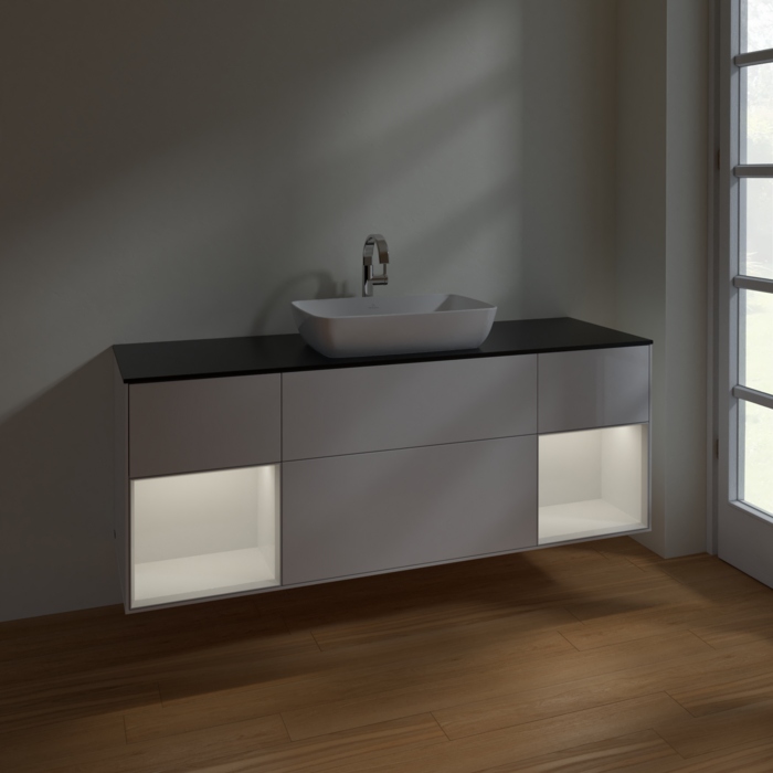 Тумба під раковину Villeroy & Boch Finion 160х50,1 см з підсвічуванням МДФ білий глянцевий лак/скло чорне матове F862GFGF
