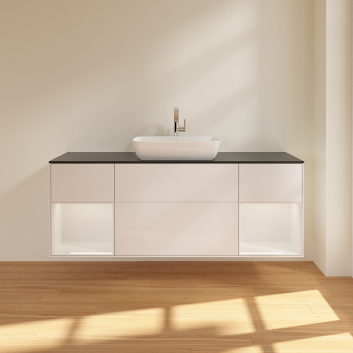 push-to-opeen Technology для максимальної зручності . технологіяПуск до відкриття у меблях для ванної кімнати Villeroy & Boch робить ваше повсякденне життя неймовірно легким. Фасади без ручок виглядають особливо елегантно, і завдяки технології, що відштовхується, їх можна легко відкрити та закрити з мінімальним тиском.